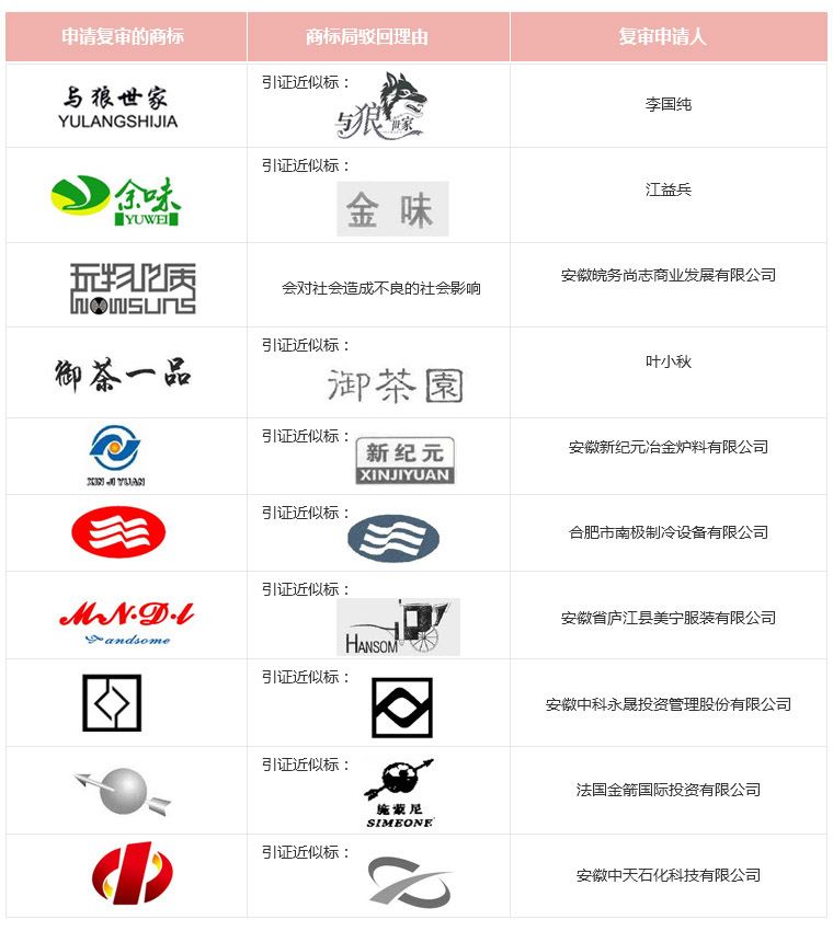 (1).当事人对商标局驳回商标注册申请不服的复审;
